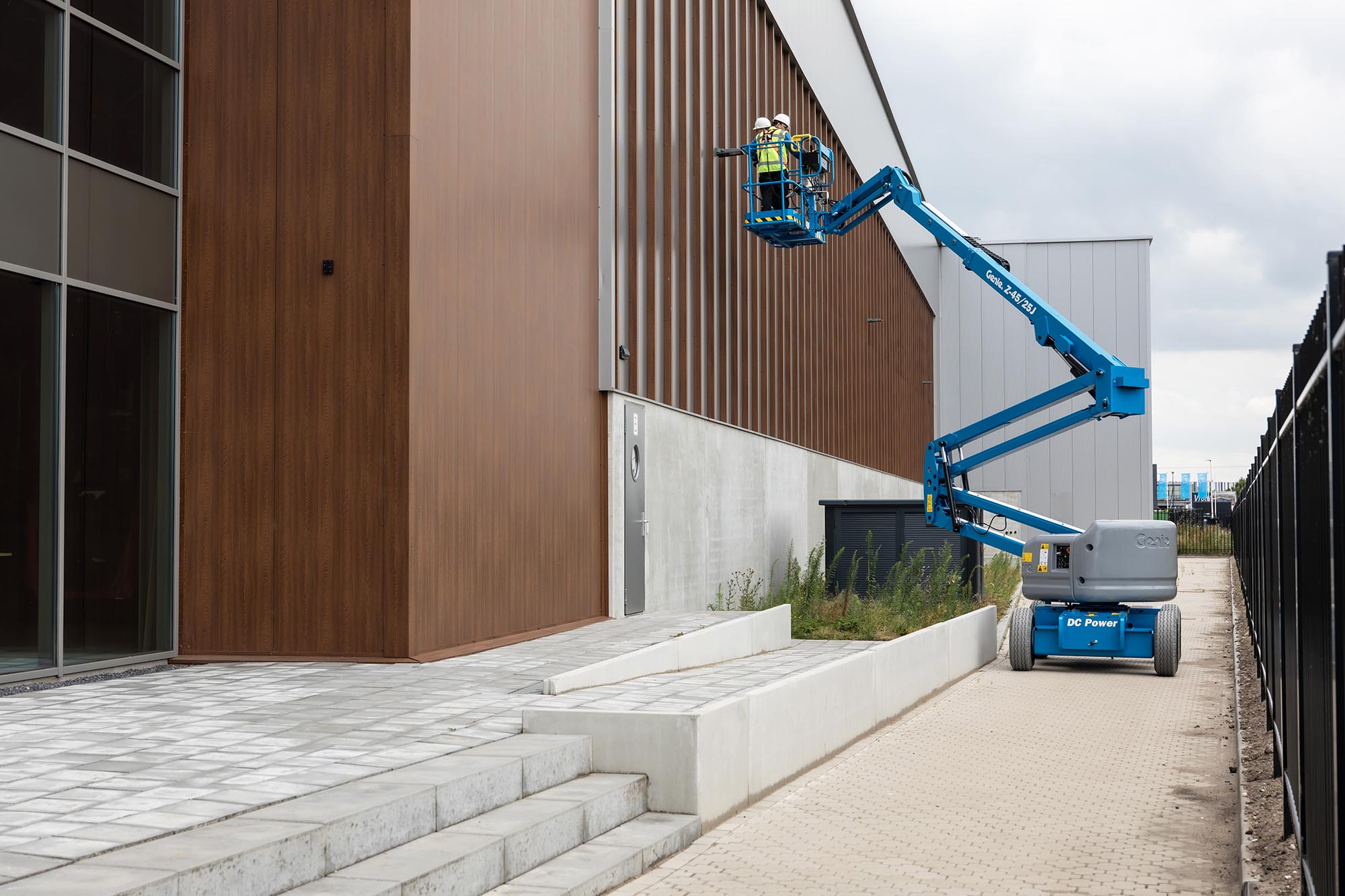 La piattaforma elettrica a braccio articolato Genie Z-45/25J DC assicura un funzionamento silenzioso e a zero emissioni. La piattaforma Genie può operare in prossimità di edifici o attorno a ostacoli e accedere ad aree di lavoro sopraelevate in corsie/corridoi o zone trafficate.