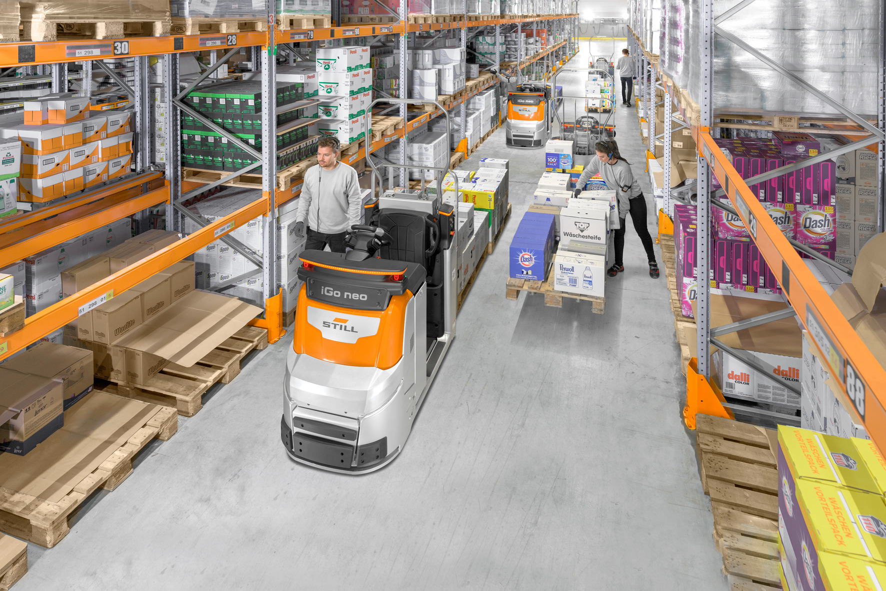 • I carrelli elevatori iGo neo si muovono, sterzano, accelerano e frenano in modo autonomo e seguono l’operatore a ogni svolta