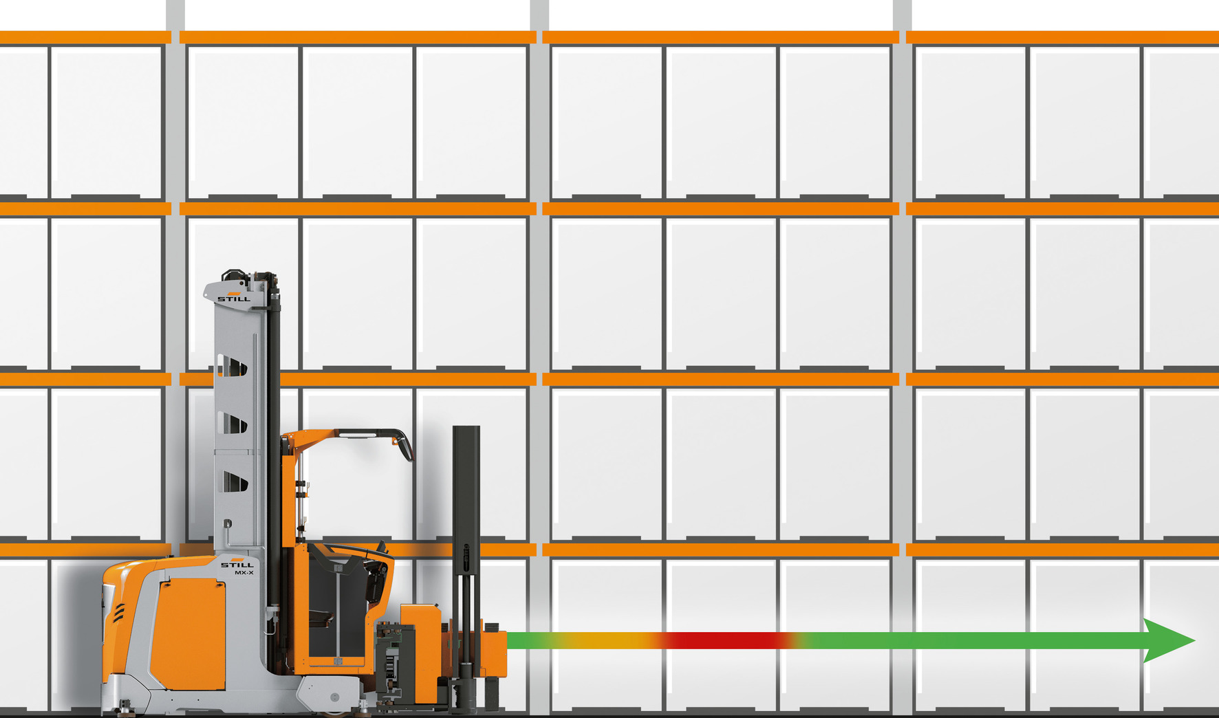Risparmiare tempo nel depositare e prelevare le merci nel magazzino: i carichi pesanti provocano oscillazioni nei sollevamenti del MX-X. Ne consegue un tempo di attesa finché le oscillazioni non si fermano. Il sistema optional ASL risolve il problema del tempo di attesa e delle oscillazioni, rende il lavoro estremamente più piacevole e aumenta la capacità di movimentazione fino al 5%. Il sistema permette movimenti di trasporto rapidi e sicuri, che si adattano in modo ottimale all’altezza di sollevamento e al carico.