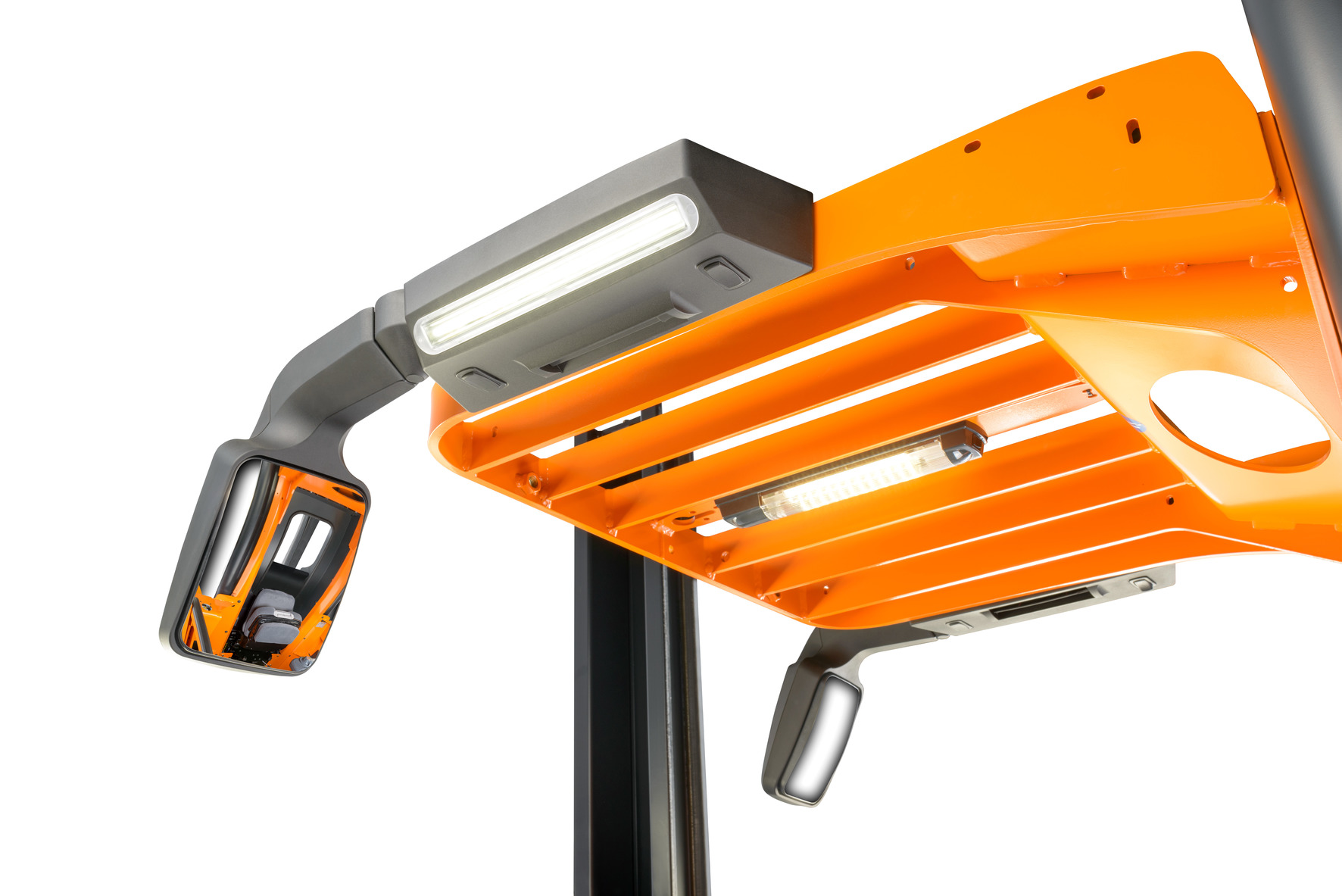 Lo specchietto panoramico che può essere montato sulla sinistra o sulla destra del carrello migliora la visibilità e riduce l’angolo cieco, ampliando il campo di visibilità. I conducenti sono in grado di gettare un rapido sguardo a ciò che hanno dietro, potendo così lavorare con maggior sicurezza.