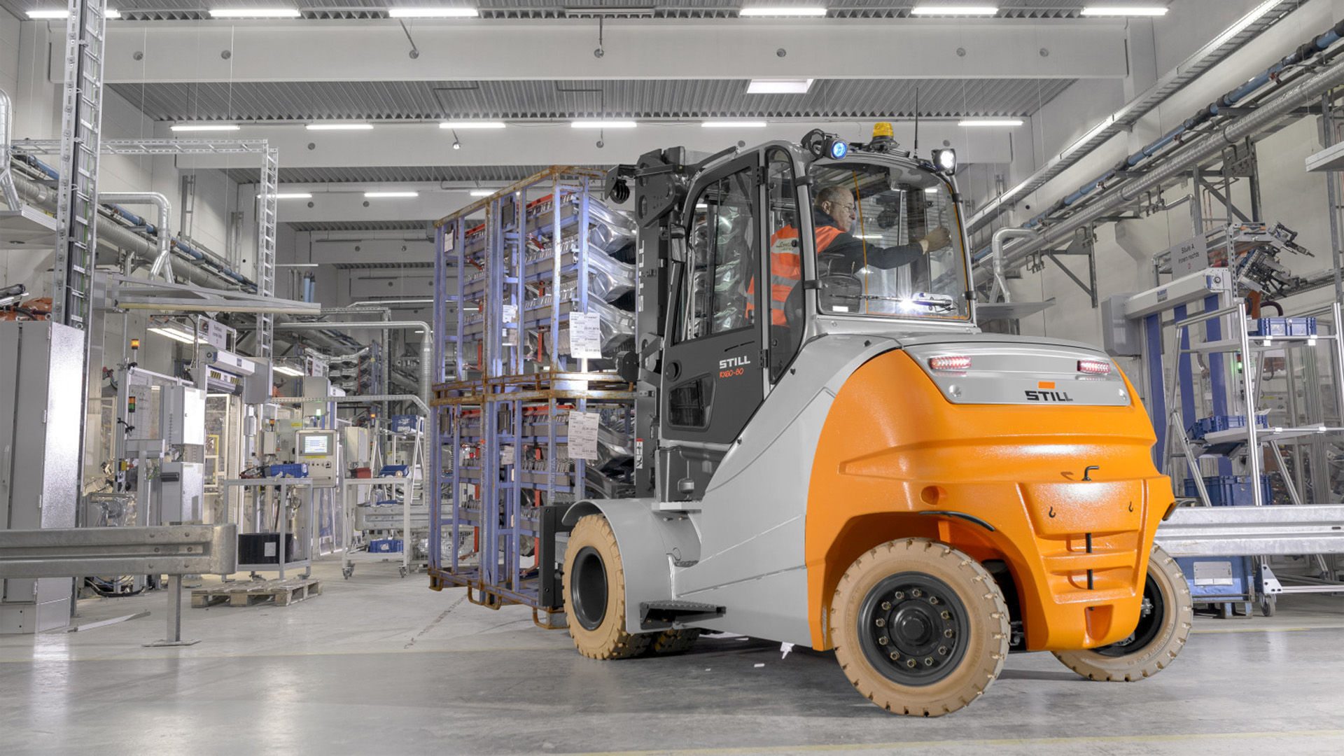 I carrelli elevatori elettrici della serie prodotta RX 60-60/80 sono concentrati di potenza che non emettono gas di scarico. Sono particolarmente efficienti e insieme estremamente compatti e maneggevoli. Il prodotto di punta della serie, RX 60-80/900, solleva fino a 8 t con un baricentro di carico di 900 mm, in corridoi di stivaggio di soli 4.999 mm. I potenti carrelli elevatori elettrici si presentano come soluzione di altissima efficienza per il trasporto a zero emissioni sia all’aperto che al chiuso, persino in ambienti umidi e polverosi.
