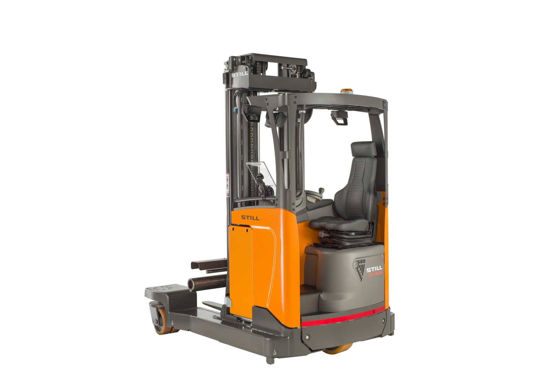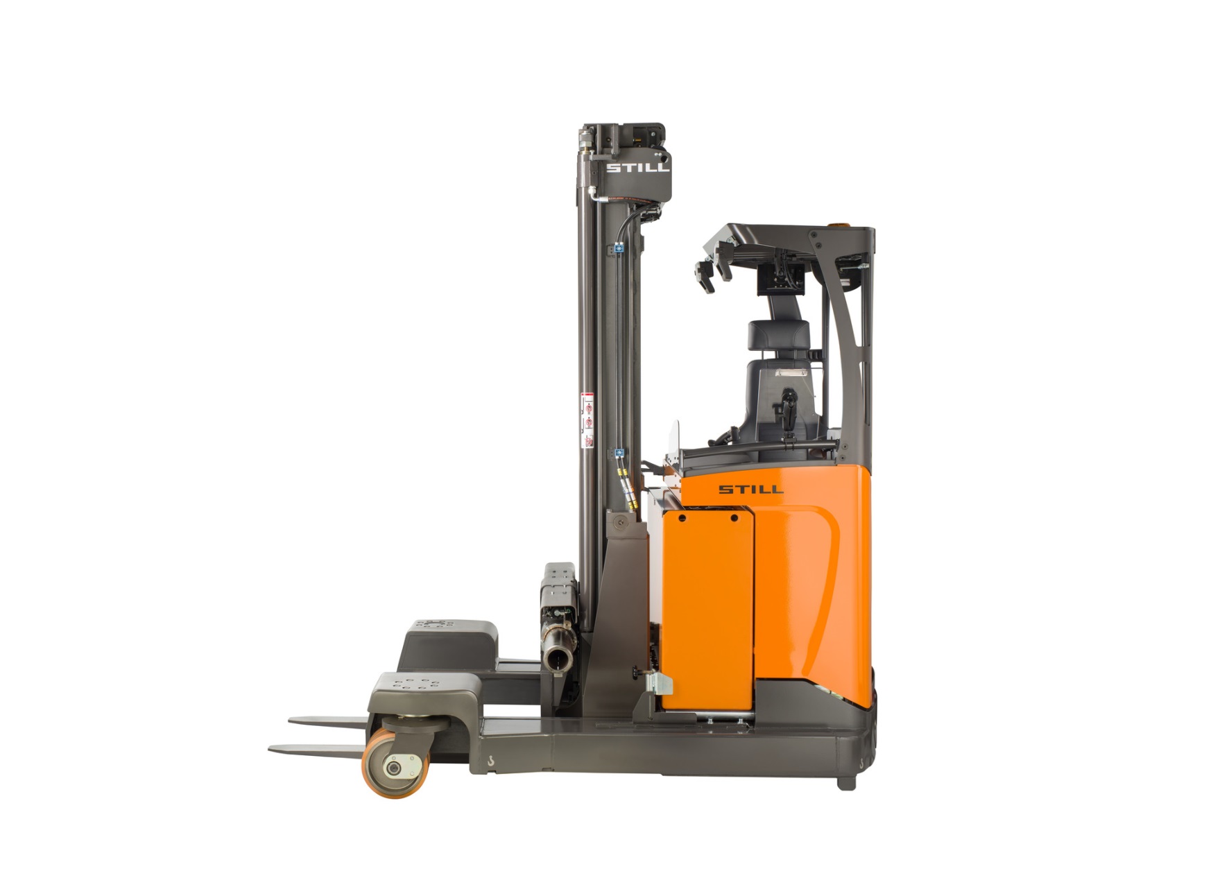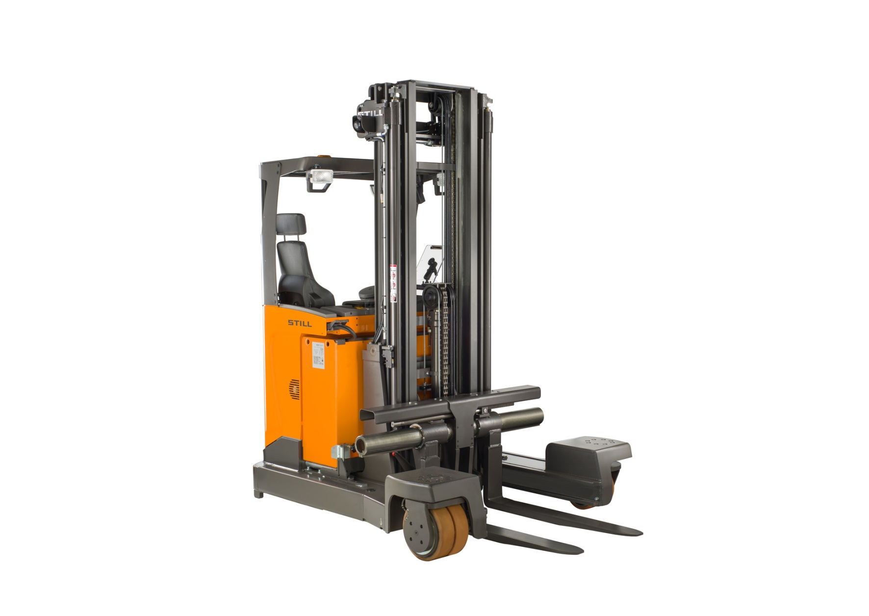 • Adatto all’utilizzo anche nelle corsie più strette grazie al concetto di carrello retrattile