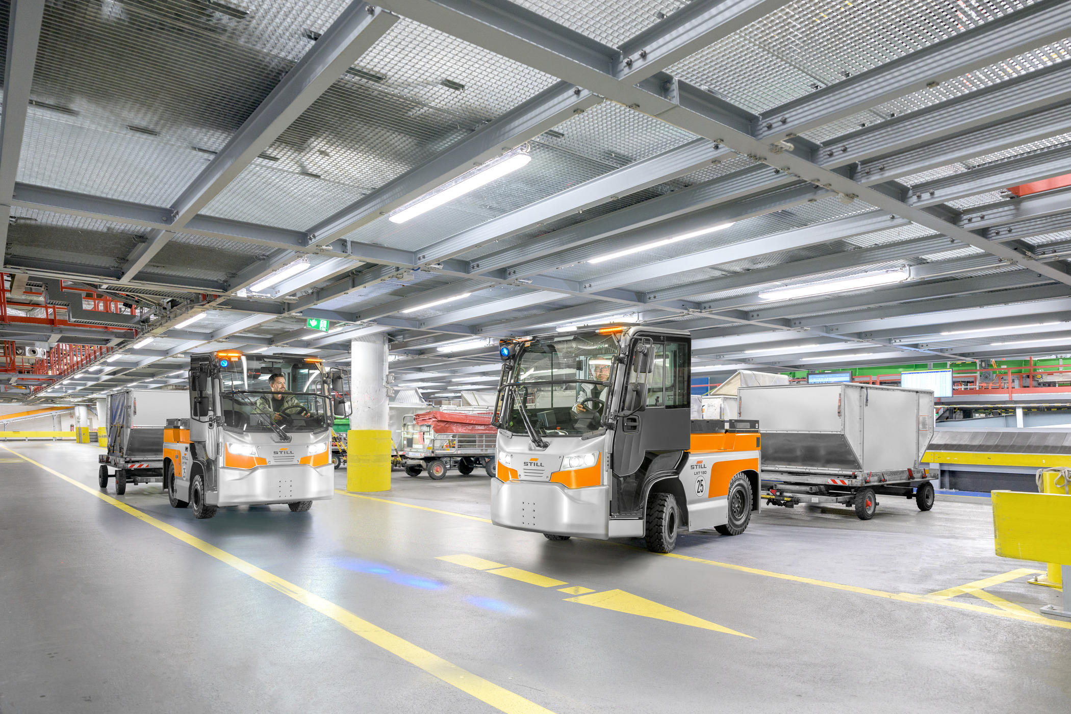 I trattori e i trasportatori si ricaricano semplicemente e rapidamente senza necessità di aprire il cofano, grazie alla presa di ricarica rapida o al caricatore a bordo. Durante l’uso, l’intelligente computer di bordo STILL Easy Control costituisce il centro di controllo per il conducente. Il grande display fornisce una panoramica di tutte le principali informazioni, mentre varie altre funzioni, per esempio i diversi programmi di guida, si attivano premendo un pulsante. E se la prospettiva di un flusso di merci sicuro, intelligente e veloce non fosse abbastanza per soddisfare tutte le vostre aspettative, aspettate solo di provare l’ergonomia, il comfort e l’esperienza di guida dinamica.