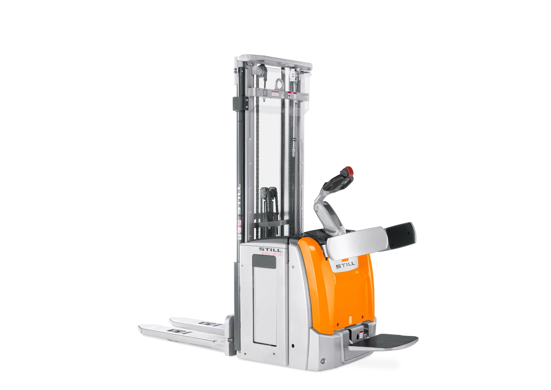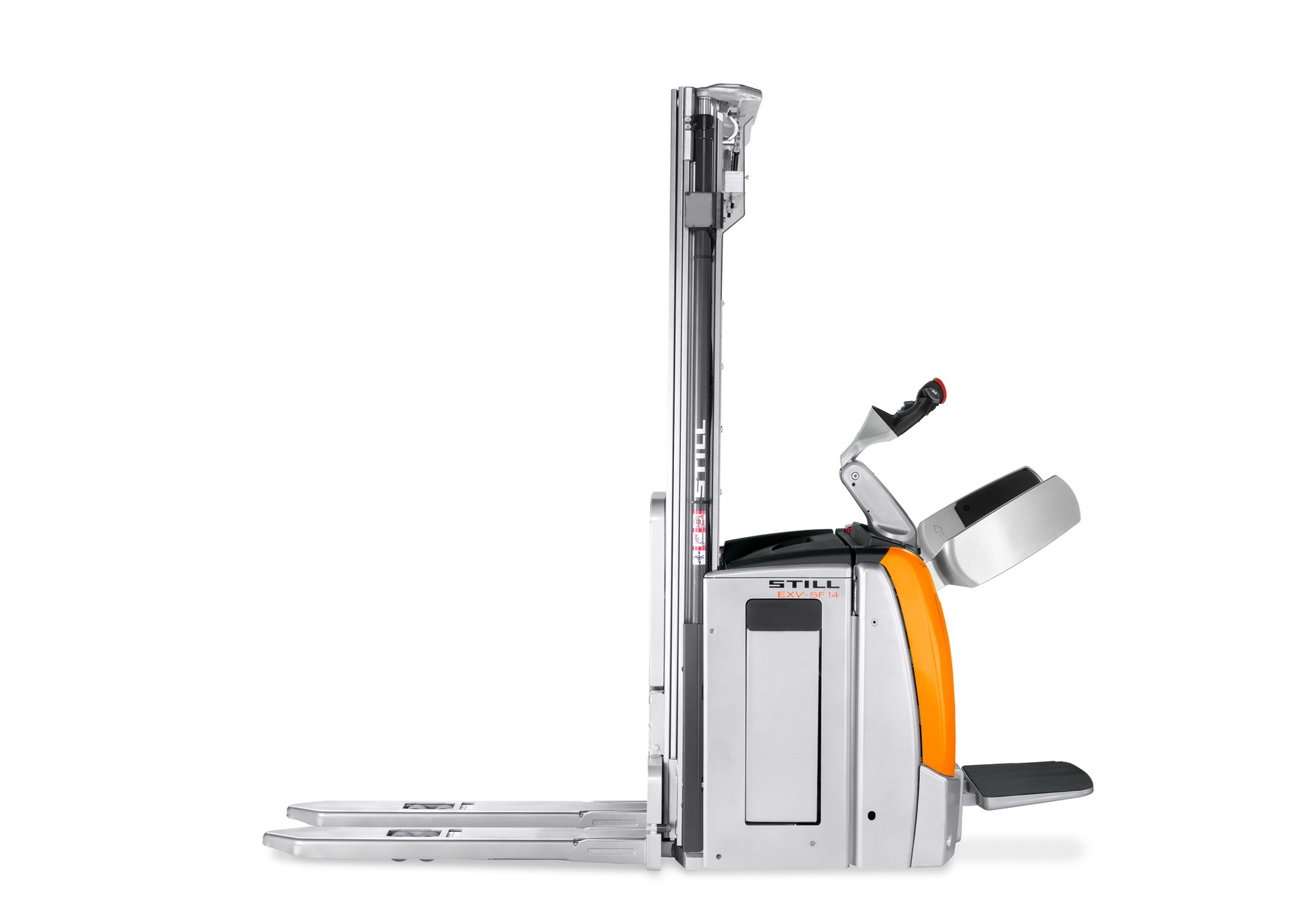 Lo stoccatore a timone EXV-SF è rapido, robusto e intelligente. Dotato di pedana ripiegabile e braccioli laterali di protezione, può raggiungere una velocità massima di 10 km/h e movimenta fino a 2.000 kg di pallet. Grazie alla sua notevole portata residua può anche stoccare grandi quantità a un’altezza elevata; a seconda del montante, le altezze di stoccaggio superiori ai cinque metri non costituiscono un problema. Il nuovo EXV-SF è attualmente anche l’unico stoccatore a timone dotato di display informativo a colori.