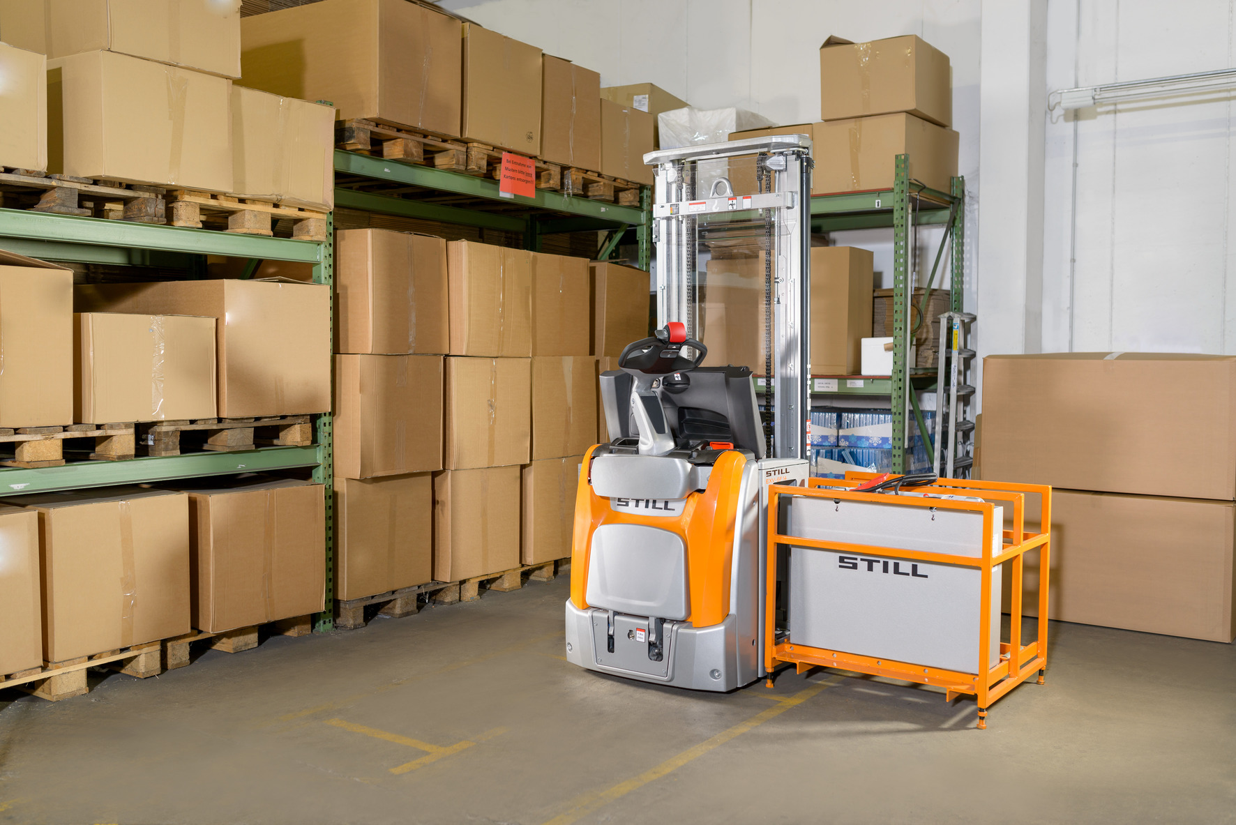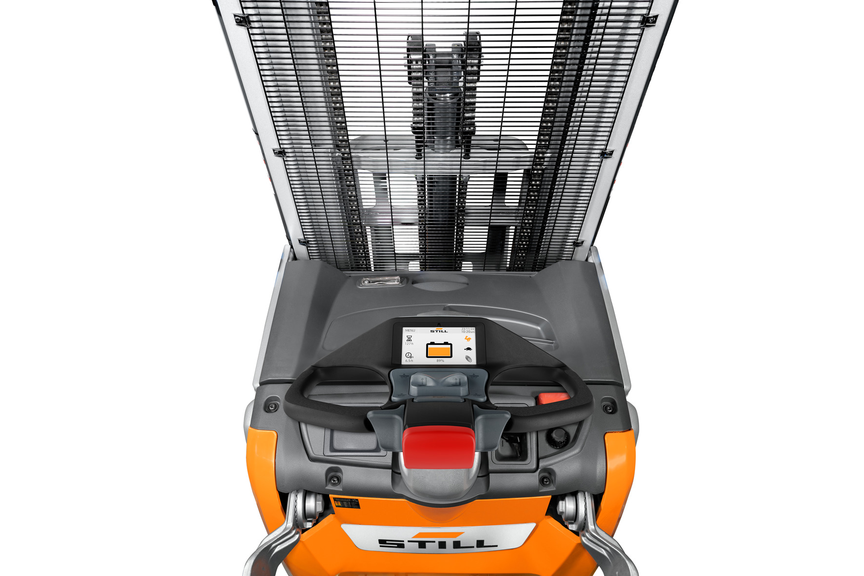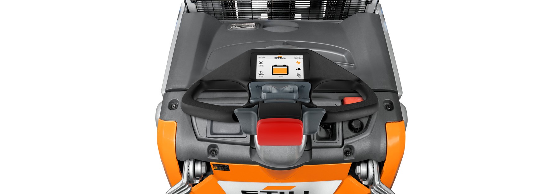Gestione sicura e precisa del carico in base all’altezza di sollevamento del carico – Il Dynamic Load Control è stato sviluppato per facilitare il lavoro degli operatori dei carrelli elevatori ad alto sollevamento EXV e FXV STILL. Il sistema di assistenza smart è in grado di valutare con estrema precisione le capacità di carico e i pesi. È disponibile in diversi livelli di estensione. Mediante la visualizzazione sull’unità di controllo, il livello massimo di estensione DLC 3 mostra all’operatore il peso attuale del carico, l’altezza massima di sollevamento possibile con questo carico e l’altezza di sollevamento attuale. Quest’ultima viene misurata mediante un sensore a ultrasuoni. Quando l’utente si avvicina all’altezza massima di sollevamento, il sensore emette un segnale di allarme. Il processo di sollevamento si blocca automaticamente prima di superare il sollevamento massimo.