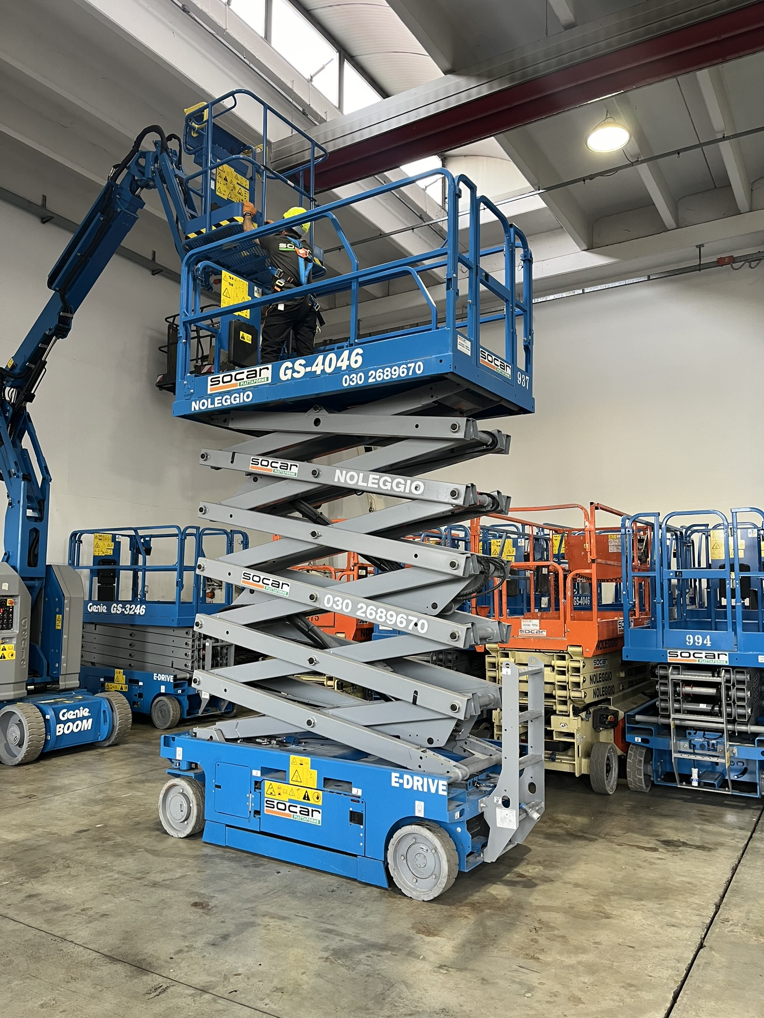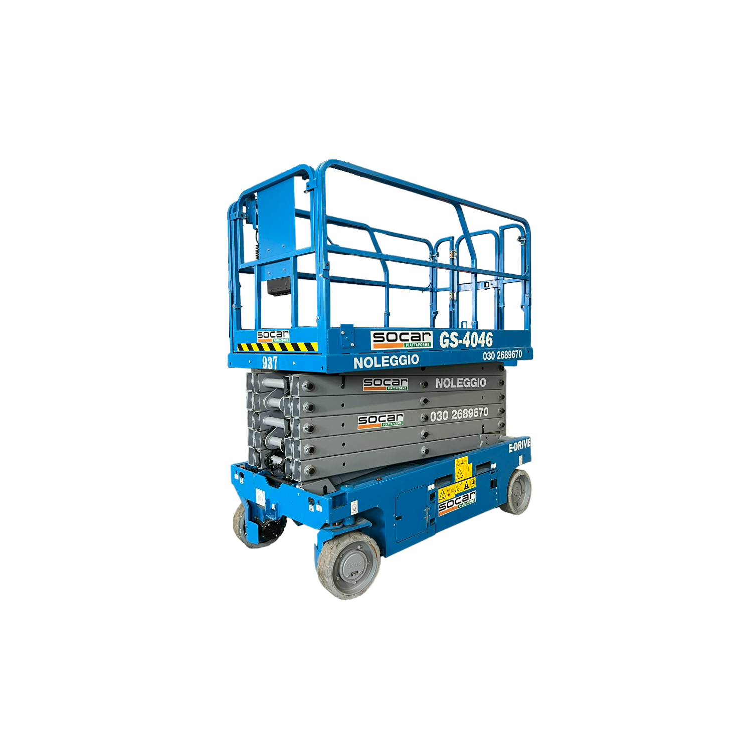 La piattaforma a forbice Genie GS-4046 E-Drive aumenta la produttività in ambienti con soffitti elevati.  Ideale per lavorare in corridoi stretti grazie al suo ingombro compatto, è dotata della trazione elettrica CA Genie E-Drive, all’avanguardia, per prestazioni e tempi di funzionamento senza pari in cantieri al chiuso e all’aperto in quota che richiedono una significativa quantità di spostamenti su superfici solide e in piano.